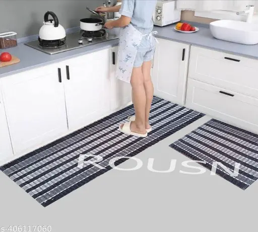 ROUSN Cotton kitchen mats , cotton carpet kitchen mat ,rugs for kitchen,rugs and mats,rugs for living room,rugs,kitchen mats, rugs for bedroom,kitcchen mat floor,cotton kitchen mat washable,Hand loom Rugs,runner mat quick absorbency , washable, big size, Designer mat for home, bed room, kitchen mats set of 2 pecs size (45 cm x 120 cm Runner, 38 x 58 cm mat) kitchen mat, floor runner mat, kitchen floor mat, Introducing this new conceptual cotton runner mat with doormat 100% Cotton Soft Floor Rug for Bedroom Living Room Kitchen Bedside Runner Pack of 2 pcs set pcsa piece of material on the floor in front of a door which you can clean your shoes on before going inside