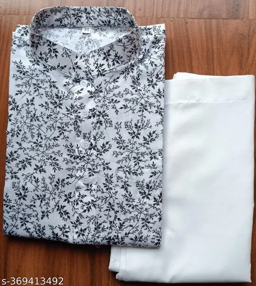 Very unique print of kurta plain white payjama