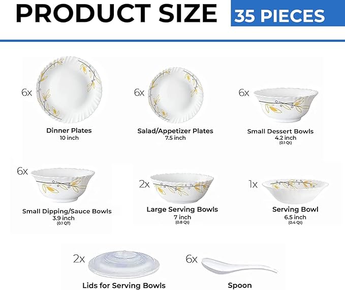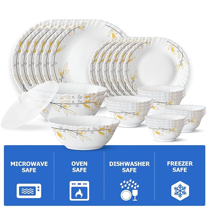 - 🍛MICROWAVE SAFE & CHIP RESISTANT – Looking to upgrade your everyday didning experience. The Larah dinner sets are just what you need. The toughened opalware glass is chip-resistant so it can withstand everyday use and microwave safe too so you can just go right ahead, and heat your meals on the plate.