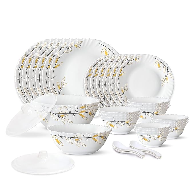 Larah by Borosil Bella Silk Series Opalware Dinner Set | 35 Pieces for Family of 6 | Microwave & Dishwasher Safe | Bone-Ash Free | Crockery Set for Dining & Gifting | Plates & Bowls | White