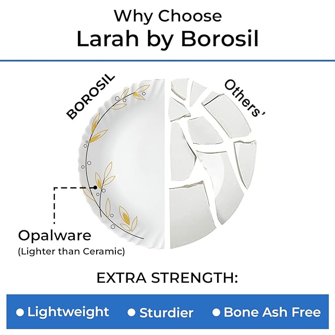 - ✨STAIN-RESISTANT & DISHWASHER SAFE – Hygienic and easy to clean, every Larah by Borosil opalware is stain resistant so there are no remnants of your last meal by way of stains or smells.