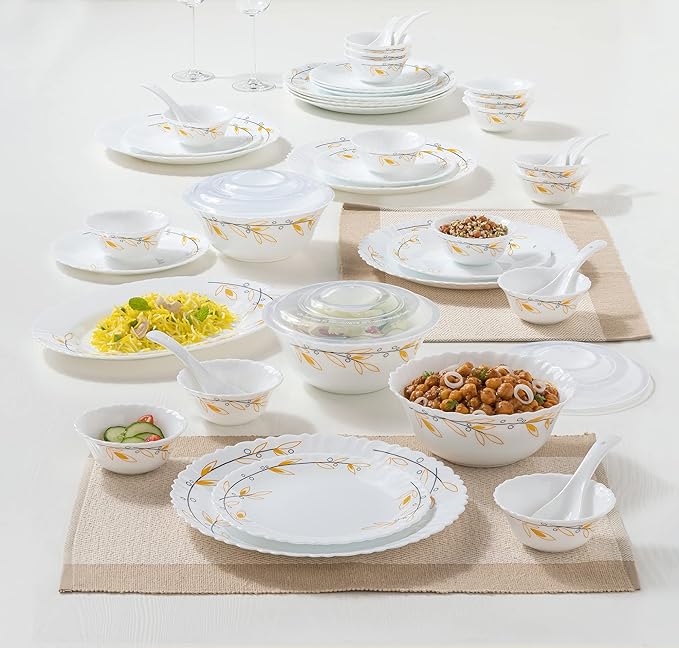 Be the first to review “Larah by Borosil Bella Silk Series Opalware Dinner Set | 35 Pieces for Family of 6 | Microwave & Dishwasher Safe | Bone-Ash Free | Crockery Set for Dining & Gifting | Plates & Bowls | White”