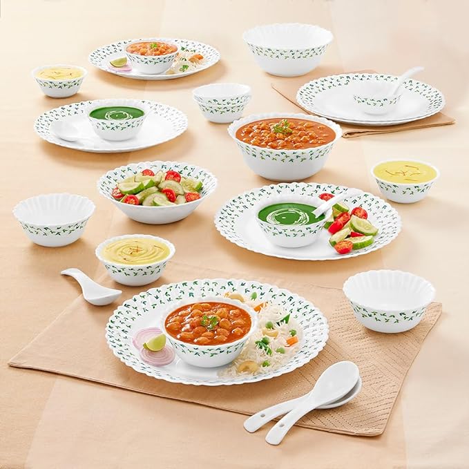 Be the first to review “Larah by Borosil Sage Silk Series Opalware Dinner Set | 27 Pieces for Family of 6 | Microwave & Dishwasher Safe | Bone-Ash Free | Crockery Set for Dining & Gifting | Plates & Bowls | White, Floral”