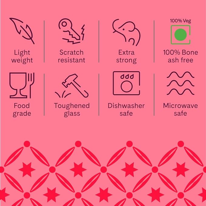 - 🍀BONE-ASH FREE, 100% VEGETERIAN – The dinner sets are completely free of any animal derived components. They do not contain any bone-ash which is perfect for strict vegetarians. They can also be used for .festive occasions or after pujas.