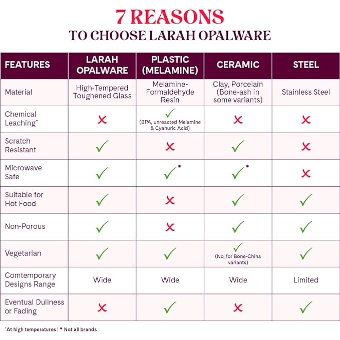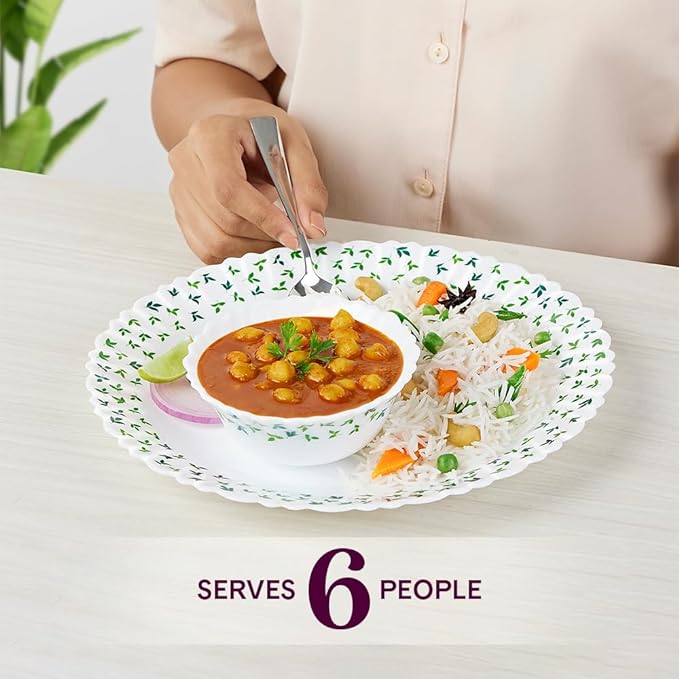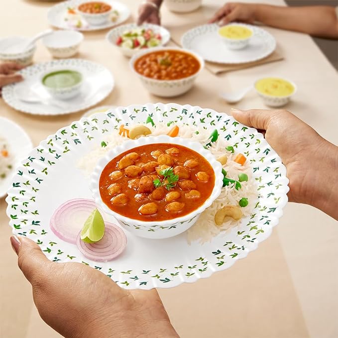 - 🍛MICROWAVE SAFE & CHIP RESISTANT – Looking to upgrade your everyday didning experience. The Larah dinner sets are just what you need. The toughened opalware glass is chip-resistant so it can withstand everyday use and microwave safe too so you can just go right ahead, and heat your meals on the plate.