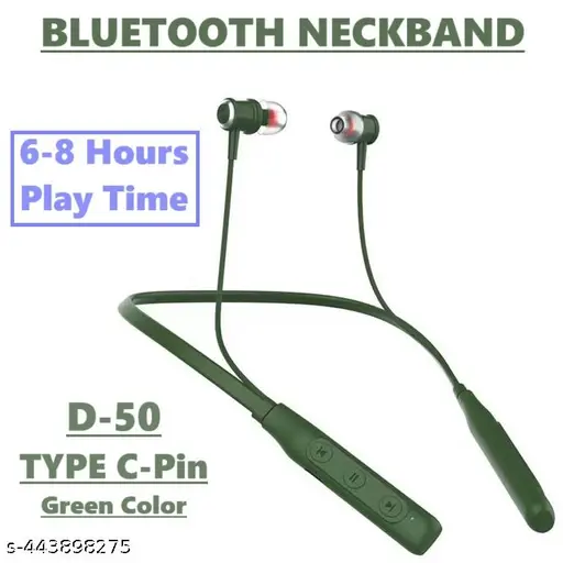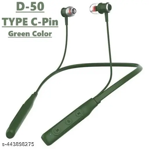 Light Weight Durable D-50 Green Type C-Pin Bluetooth Neckband Wireless With 6-8 Hours Battery