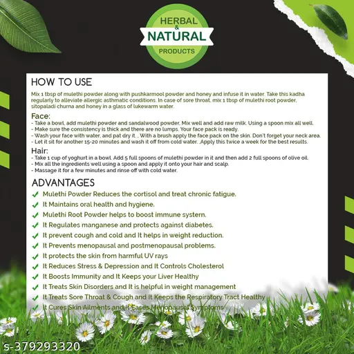 Immune system booster : Mulethi powder is believed to have immune-stimulating properties. It may help enhance the activity of certain immune cells.