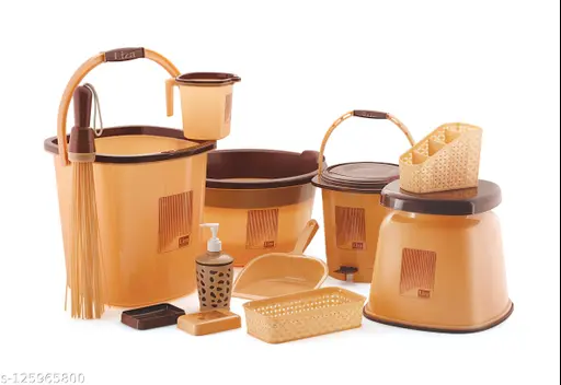 Name : Liza opera Plastic Bucket, Tub & Mug Bathroom Set 11 Pcs, Heavy Duty, Large Capacity, Brown