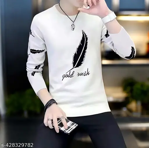 Name : Men’s Leafy Elegance Full Sleeves Cotton Blended Printed T-Shirt. Embrace the beauty of nature, one leaf at a time. Tshirts for Men | Mens T-Shirts