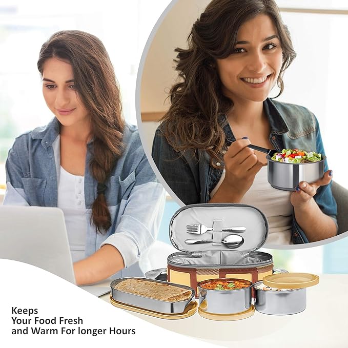 • This trendy and stylish tiffin comes with jackets which are easy to wash and clean, this tiffin s are leak proof and light in weight which makes easy to carry at office, school, while travelling, camping, picnics.