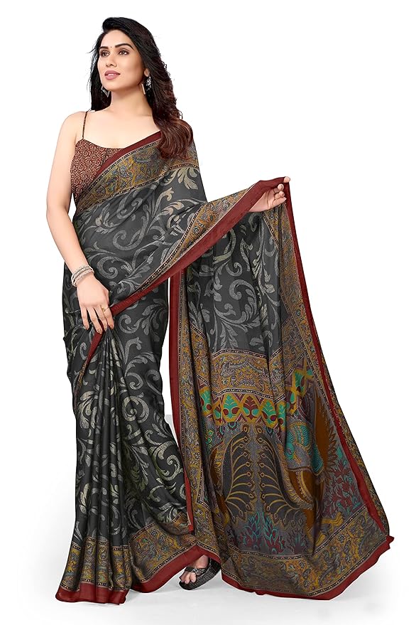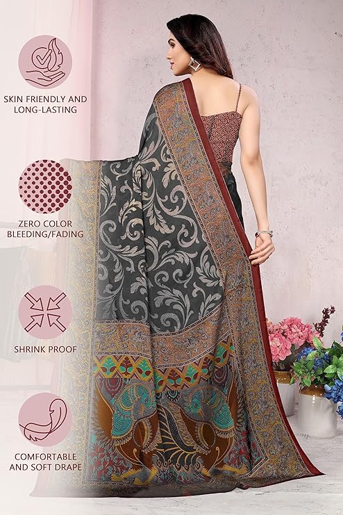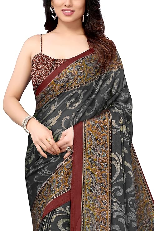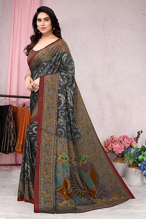 MIRCHI FASHION Women’s Stylish Chiffon Kalamkari Printed Saree with Blouse Piece