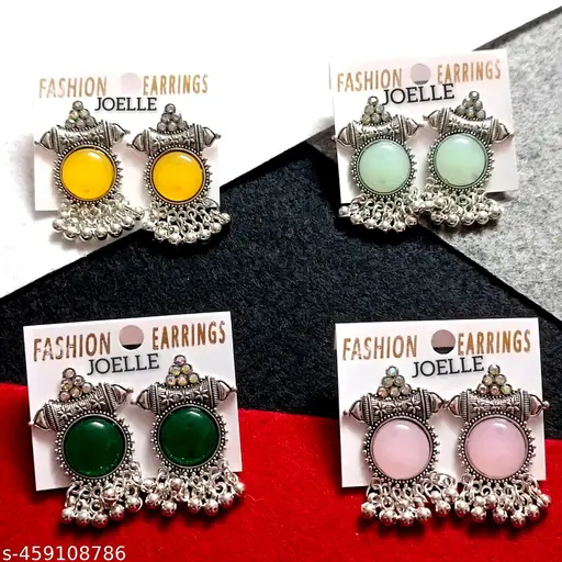 Name : Monalisha Combo of 4 Pair New Latest Design Drop & Dangles Hoop Jhumki Oxidised Silver Earrings for women/girls
