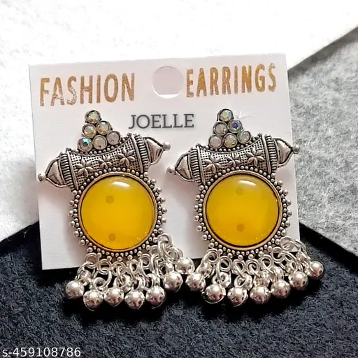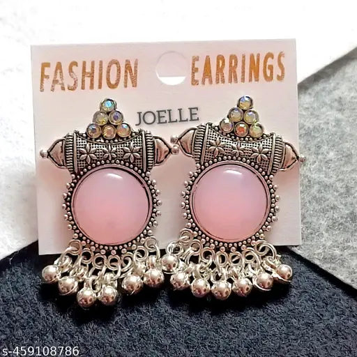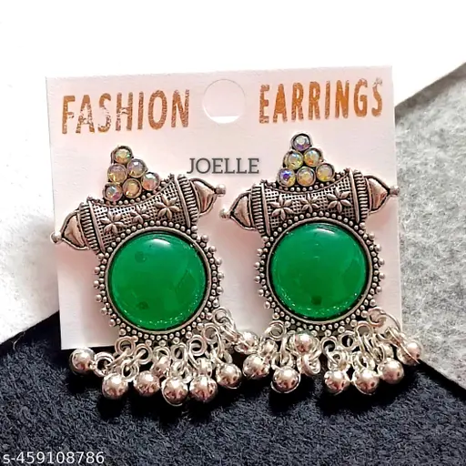 Monalisha Stylish Designer silver oxidized collection Celebrity Choice Indo western Style Stone jhumki dangle earrings- an eternal classical vintage jhumka earrings will complement any occasion ethnic wear/ daily/ college/ party wear