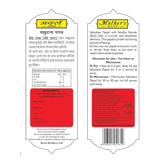 Be the first to review “Mother’s Recipe Sabudana Papad 75 gm”