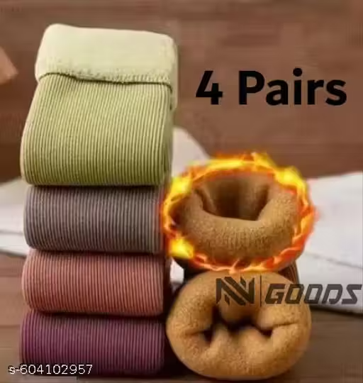 Name: N N 4 Pairs Women’s warm snow socks thickened velvet mid-calf versatile solid color floor socks.
