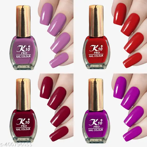 Name : Nail Polish || Long Lasting || Quick Dry || Nail Paint Combo Purple, Light Purple, Dark Red, Red (Pack of 4)