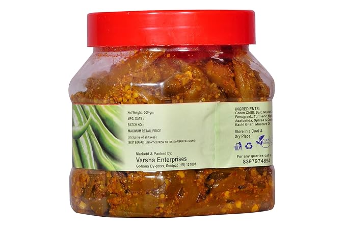 Be the first to review “Natural Diet Marwari Rajasthani Green Chilli Pickle( Real Taste of Rajasthani Pickle) Premium Pickle Jar ||Ghar Ka Achar ||Mouth-Watering Mother Made Love 400 Gram”