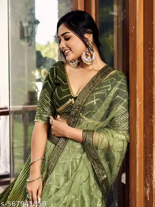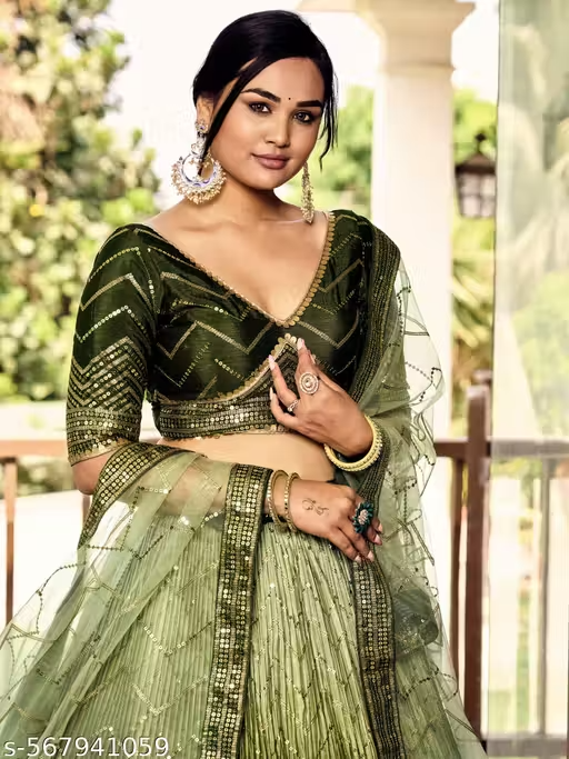 NEW HEAVY CHINON EMBROIDERY & SEQUINS & SHEDED STYLISH LEHENGA CHOLI