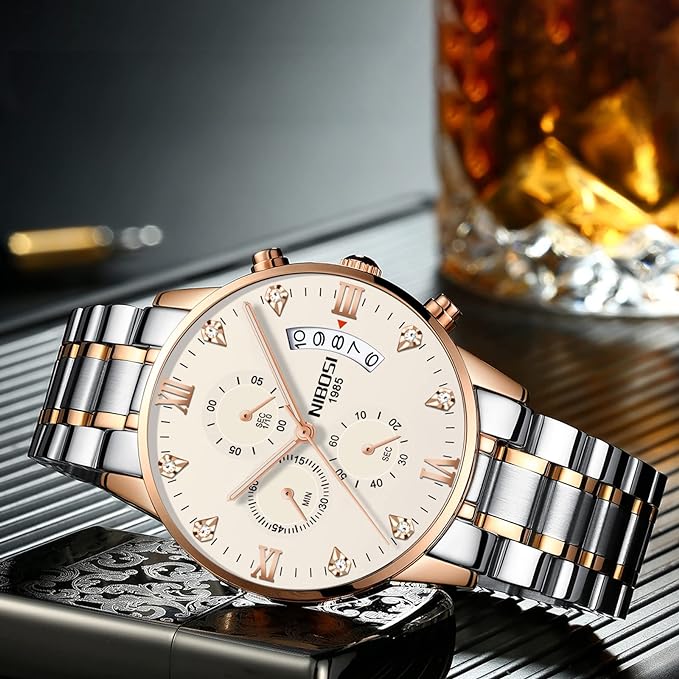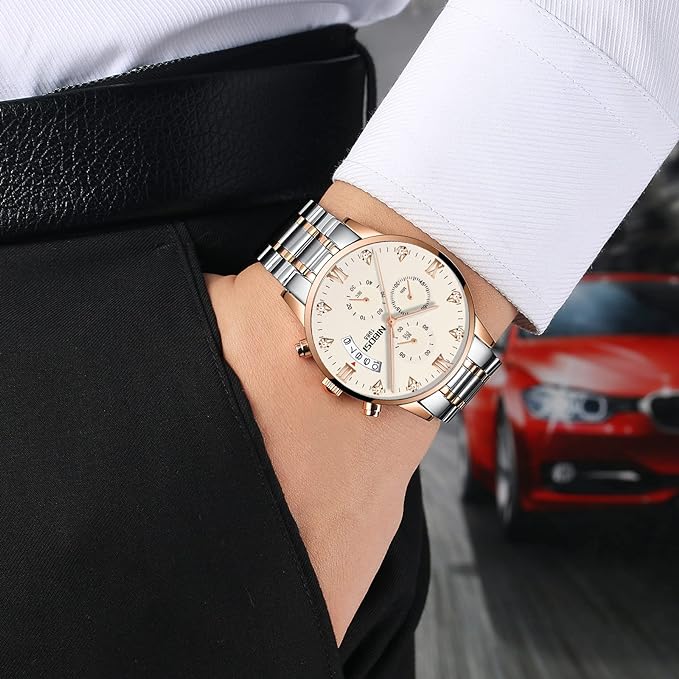 Watch for Men Fashion Business Men Watches Ultra-Thin Waterproof Chronograph Quartz Watches with Stainless Steel Band