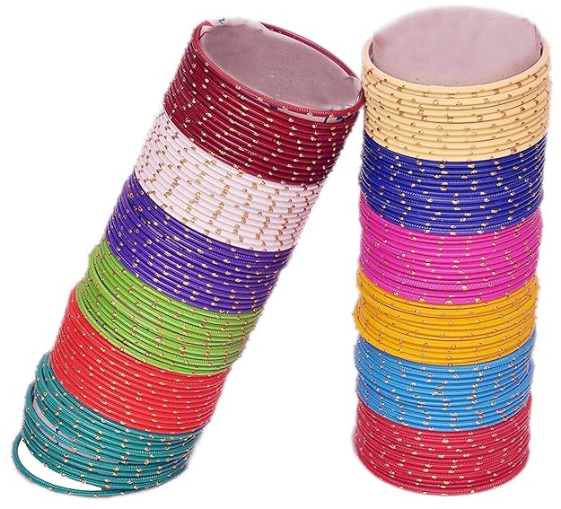 NMII Stylish Multi colour Metal Bangles set for women and Girls with Zari and Cutting Design | Fancy Multicolour Bangles for women | Metal Churi Set For Women