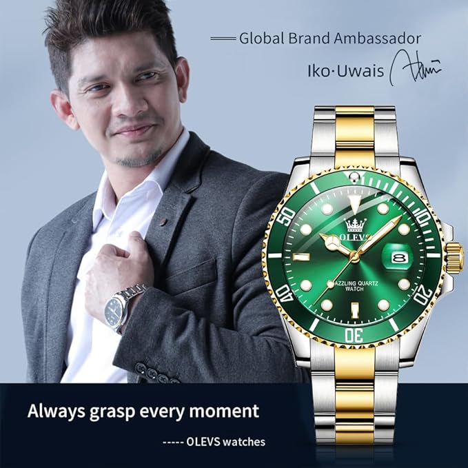 Be the first to review “Watches for Men Classic with Date Business Dress Luxury Big Face Green/Black/Blue Waterproof Luminous Mens Wrist Watch Analog Two Tone Stainless Steel Men Watch”
