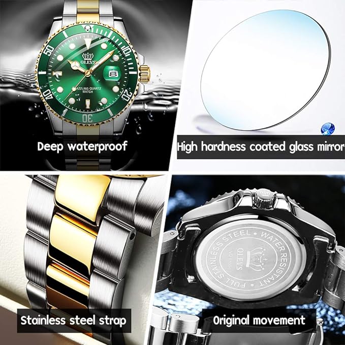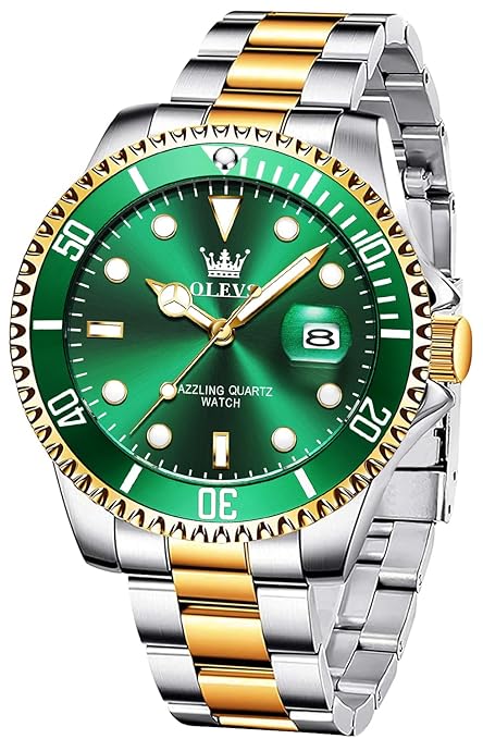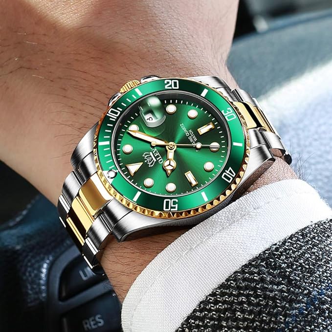 Watches for Men Classic with Date Business Dress Luxury Big Face Green/Black/Blue Waterproof Luminous Mens Wrist Watch Analog Two Tone Stainless Steel Men Watch