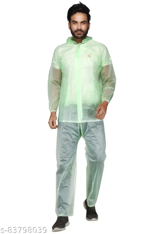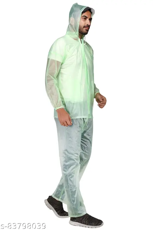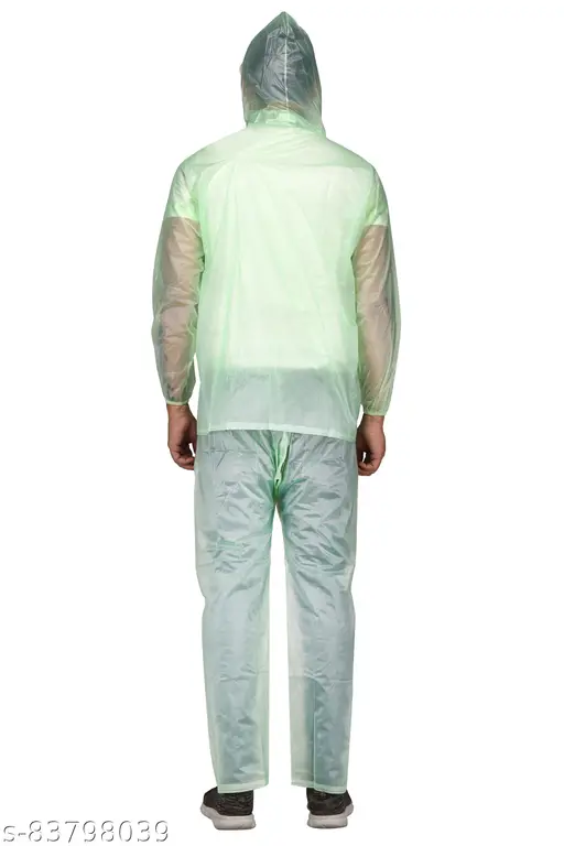 The transparent PVC material used is very comfortable to wear and does not hide your rainy day outfit. The elastic at the wrist and the neck strap at the hood make sure that no water can sip in. Plastic cap in front of the hood gives more visibility in the rain. Front zip of the jacket is protected with a long strap with buttons for more protection from rain and wind flow. The jacket has two pockets to keep the essentials. The pant has god quality elastic at the waist and the regular fit gives more comfort while walking, biking or cycling.