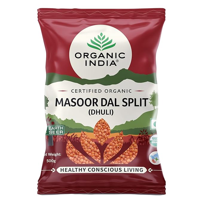 ORGANIC INDIA Rich in Proteins and Fiber, Easy to Cook Masoor Dal Split (Dhuli) 500gm