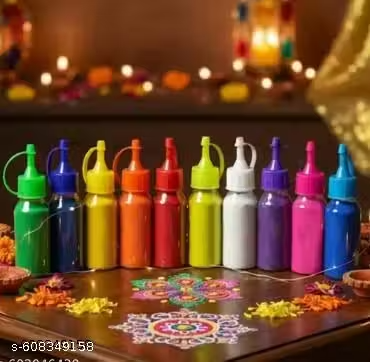 Name : Pack of 10 Rangoli Color Bottle with special nozzle design for easy flow for diwali decorations