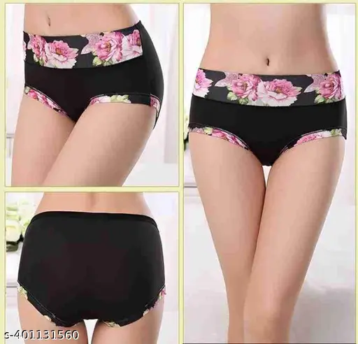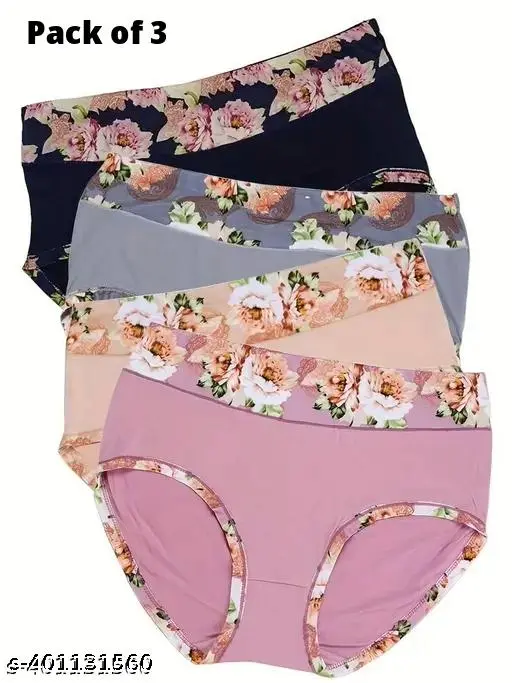 Name : PACK OF 3 MULTICOLOR Plus Size Elegant Panties Set, Women’s Plus Soft Wide Floral Trim High Stretch Breathable Briefs