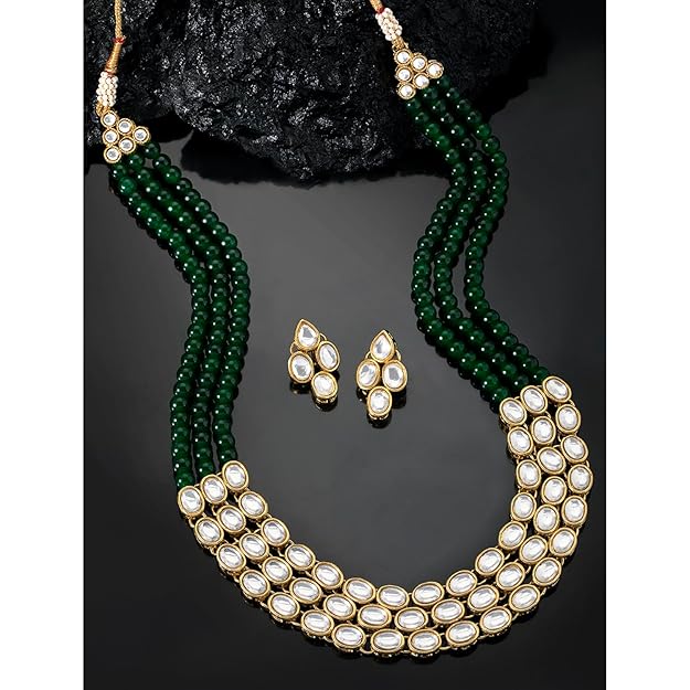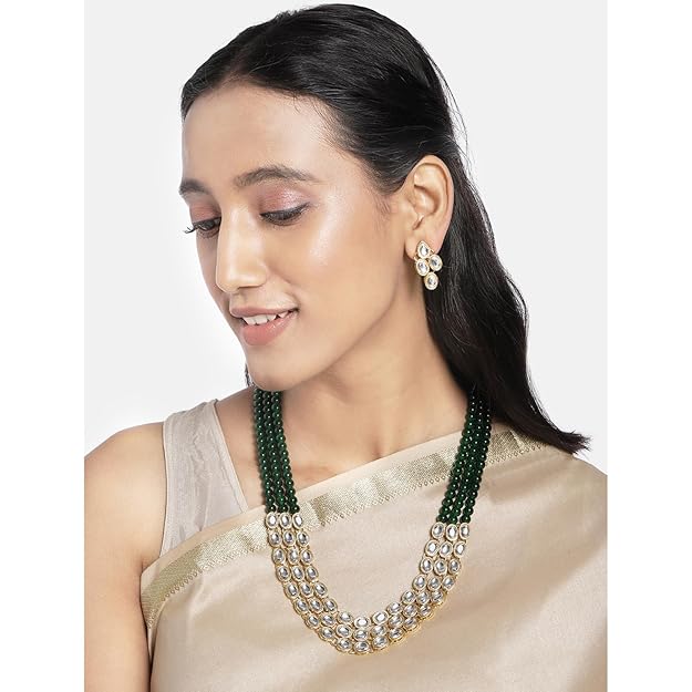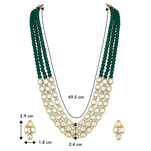 Peora Gold Plated Traditional Kundan Long Necklace Jewellery Set with Earring for Women Girls