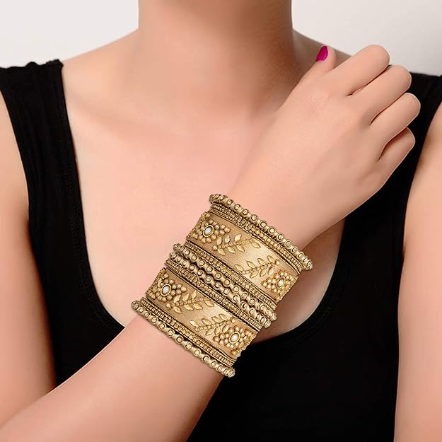 Peora Silk Thread Matching Floral Bangle Set Bridal Chuda Chura Jewellery for Women Girls