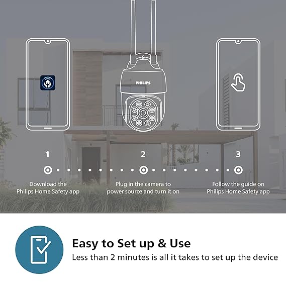 PHILIPS Outdoor Weather Proof IP65 CCTV WiFi Security Camera | PTZ | Colour Night Vision | 2 Way Talk | AES-128bit Encryption | 2 Year Brand Warranty | HSP 3800