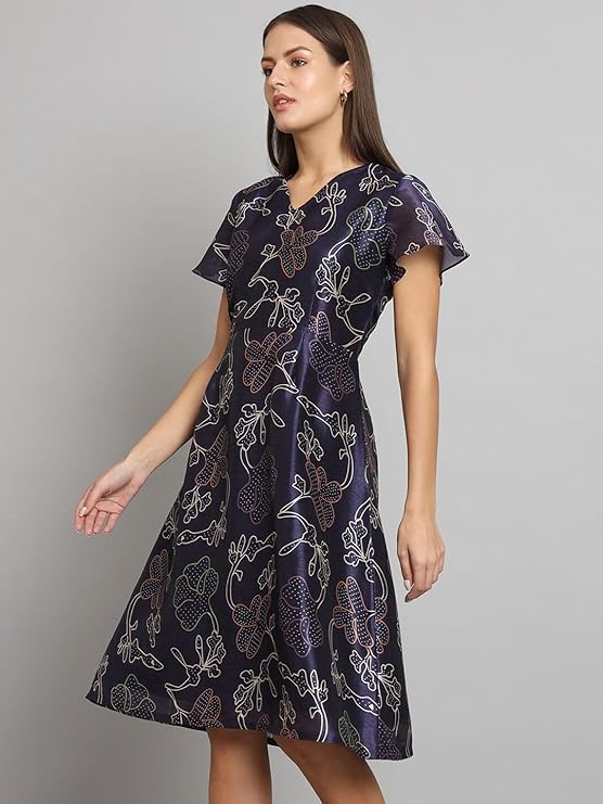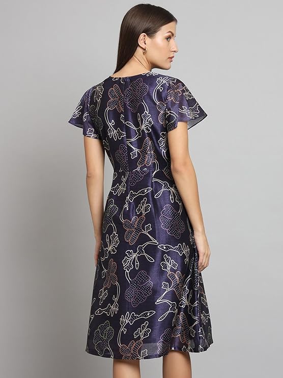 Powersutra Printed Silk Dress for Women | A-line Dress for Women | Office Wear for Women | Knee Length Dress for Women