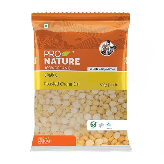 Pro Nature 100% Organic Roasted Chana Dal has constituted an important part of Indian cuisine. It can fulfil dietary requirements of an entire meal. They can also be added to chaats and bhels to add crunch and flavour. Buy Pro Nature 100% Organic Roasted Chana Dal online now!