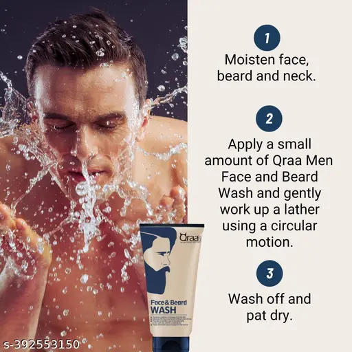 Name : Qraa Men Daily Value Pack, Combo of Mooch Oil 30ml, Face and Beard Wash100gm ( Pack of 2)