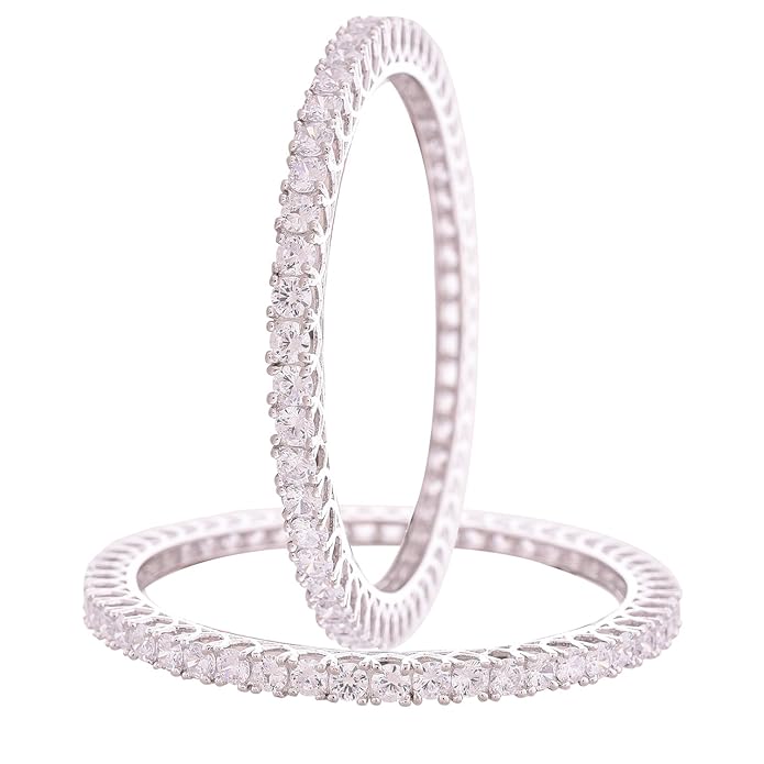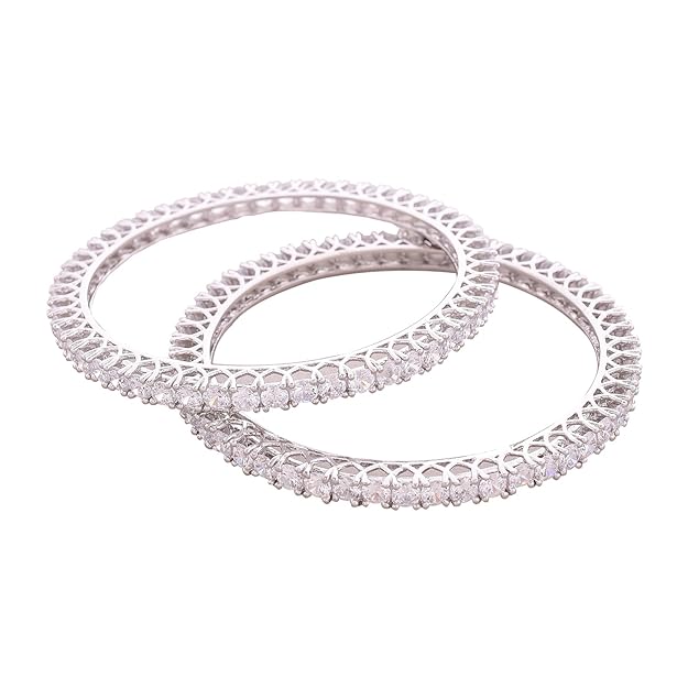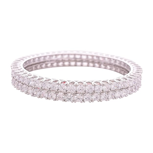 Ratnavali Jewels Brass Platinum Silver Plated AD/CZ American Diamond Traditional Latest White Bangles Set for Women & Girls