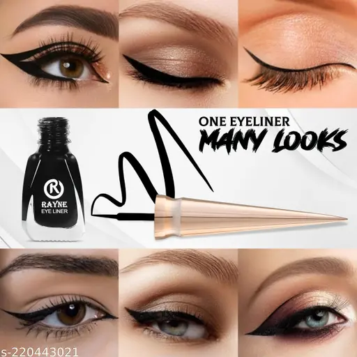 Smudge-proof, water-proof liquid eyeliner from RAYNE range that lasts up to 6-8 Hrs. and delivers intense black and different colors payoff. It has a brush tip applicator and long handle for easy application and removal. It is perfect for daily use as it is glides on like a liquid, sets into a film in one bold stroke. Use it to create different looks winged, butterfly or simple swipe.
