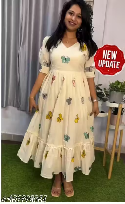 Elevate your ethnic wardrobe with our Stunning Faux rayon Gown Set, a perfect blend of and elegance. This exquisite set features a beautifully crafted gown, coordinating , and a graceful making it ideal for any festive occasion or special celebration.Kurta Fabric : Georgette Fabric : rayon Sleeve Length : Long Sleeves Pattern : Solid Net Quantity (N) : Anarkali drees , rayon Dresses , Dresses for jeans , fancy Dresses , Dresses for women, NEW PARTY WEAR •
