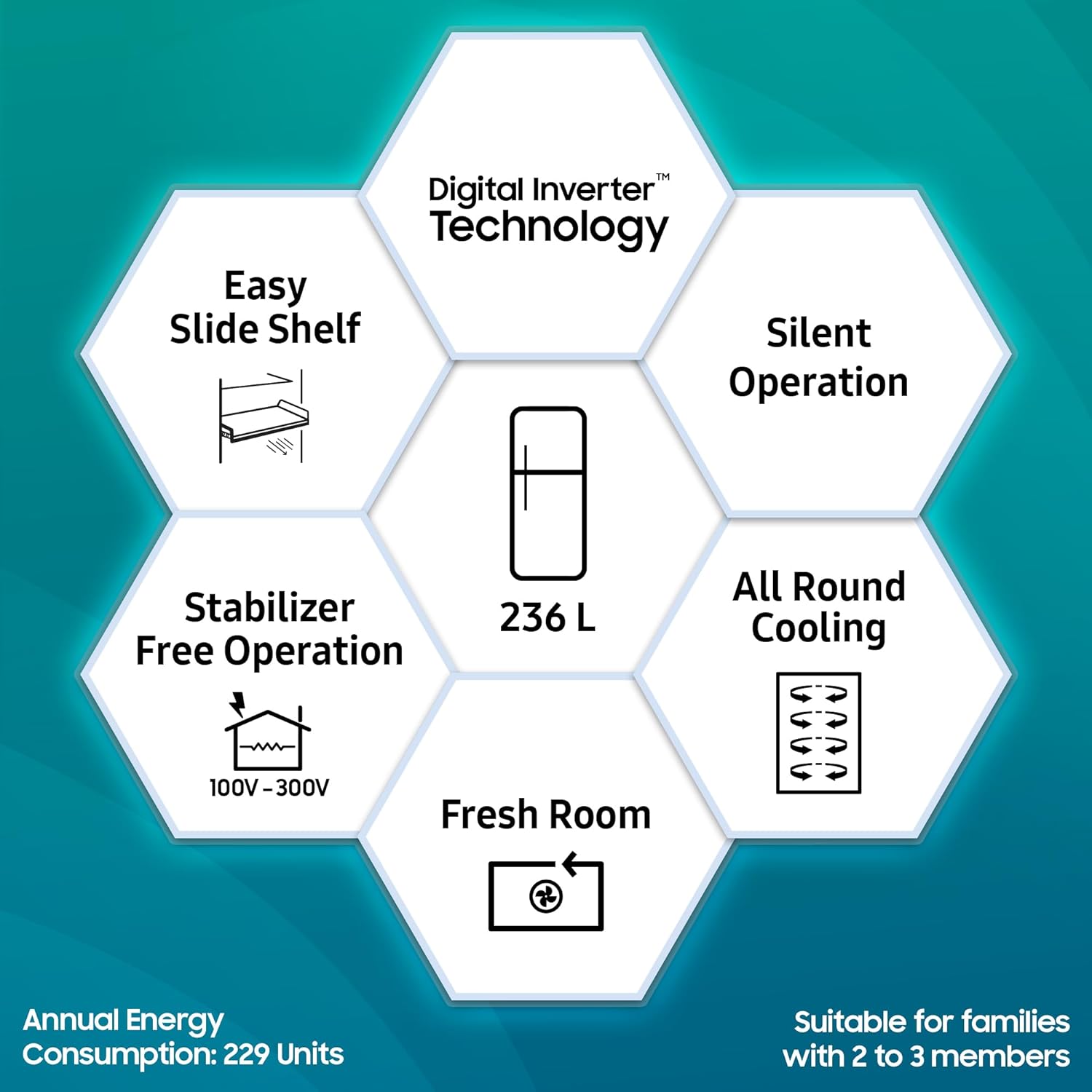 - Capacity 236 liters: Suitable for families with 2 to 3 members