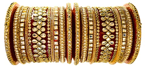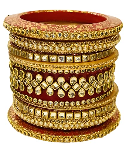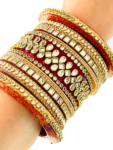 Sattyaki Kundan Bridal Dulhan Jewellery Bangles set Gold Plated Rajasthani Chura/Punjabi Chuda Set or wedding with Rajasthani Kundan Minakari and Stones for Women and Girls
