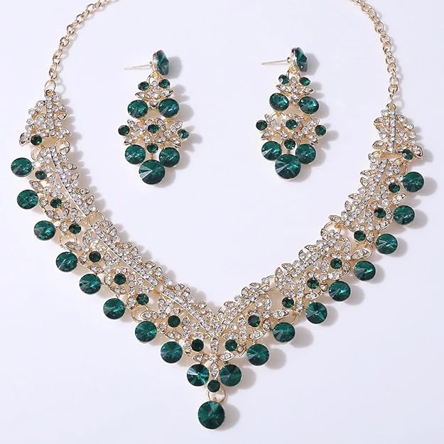 - This Jewellery Set contains Premium Quality Gold Plated Crystal Necklace with one pair of Earrings for women and girls. Perfect Party Jewellery Set with Sparking Crystal. Latest and Stylish Design.