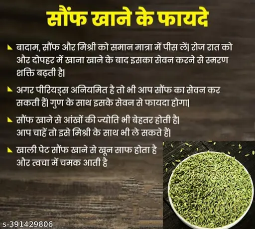 Shrijee_ Organic Fennel Seeds Sauf seed (200 GM)for weight loss use mouth freshener variyali hariyali_200 gm