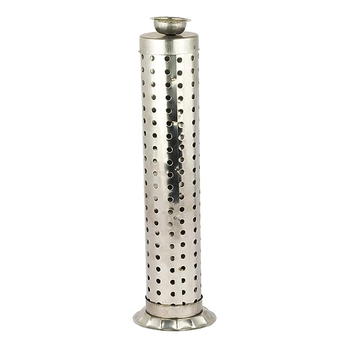 • This agarbatti stand holds multiple incense sticks at a time and ashes will nicely fall into the plate to avoid the unwanted mess. It can be used with 9 Inch tall incense sticks. Material: Stainless steel, Color: Silver