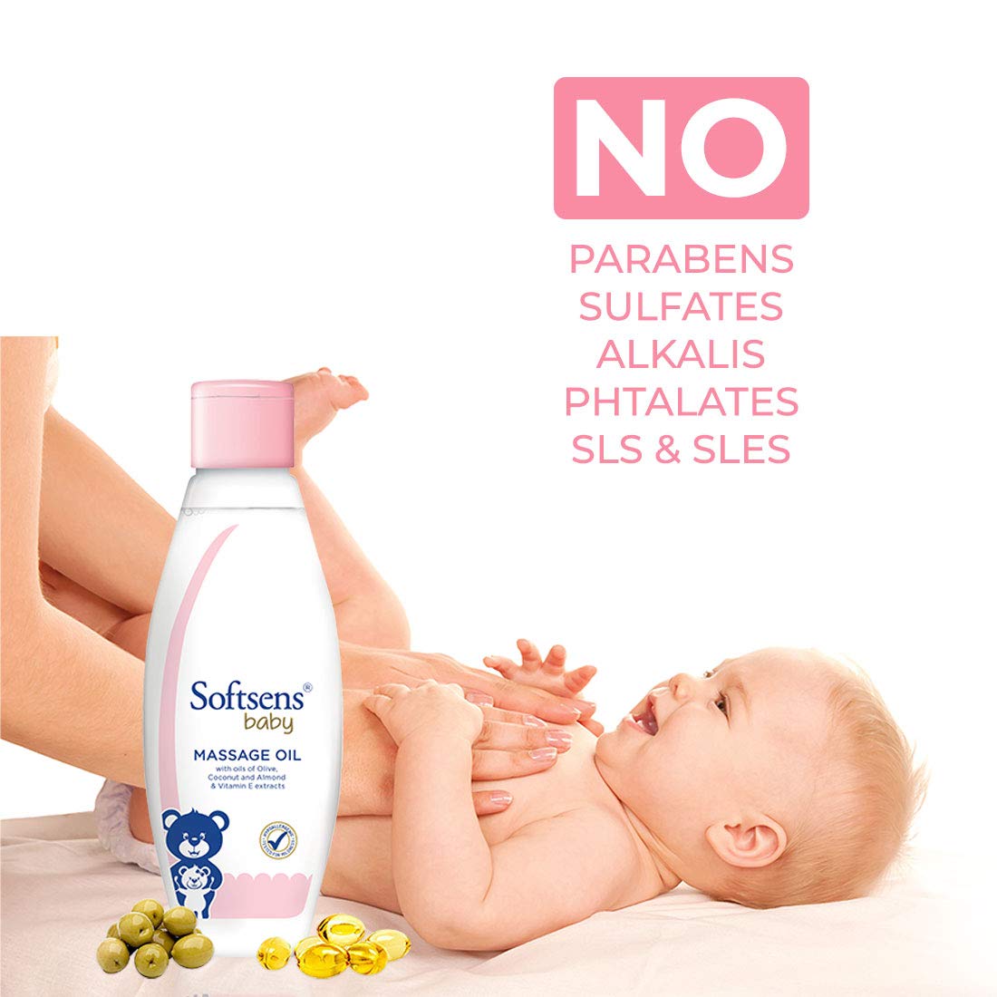 Softsens Baby Massage Oil with Vitamin E & Olive Extracts, 200Ml | Free from parabens and harmful chemicals (Pack of 4, White)