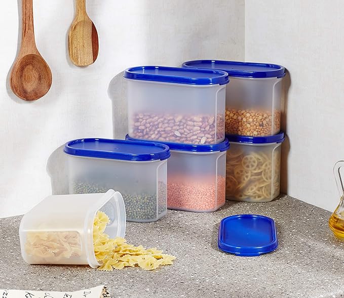 Solimo Modular Plastic Storage Containers with Lid, Set of 6, 1.2L, Blue