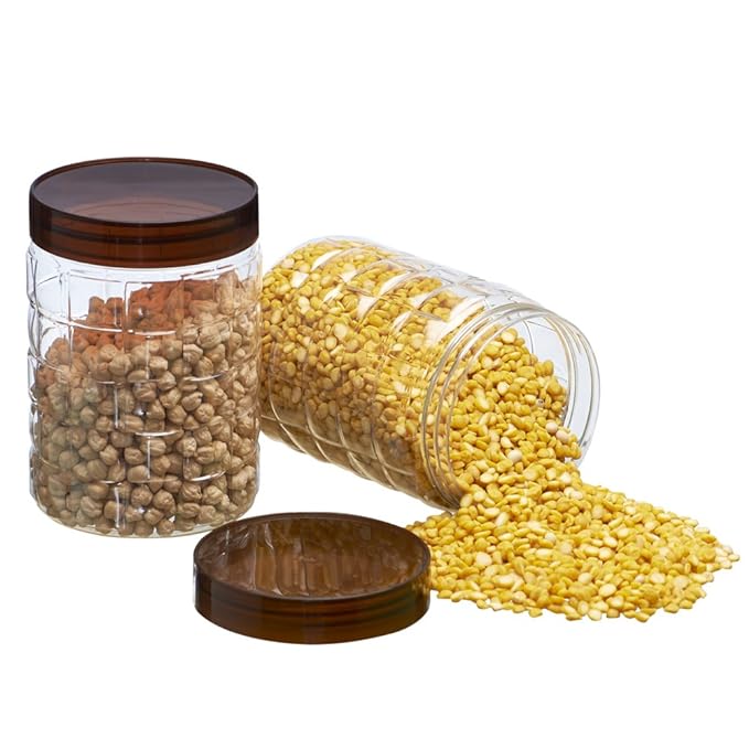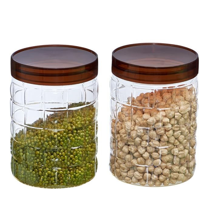 Steelo Solitaire Plastic Kitchen Storage Container Set Kitchen Organiser Air Tight Container Set Fridge safe US FDA Approved PET Food Grade Heavy Duty Material, BPA Free (Brown, 1200 ML, Pack of 2)