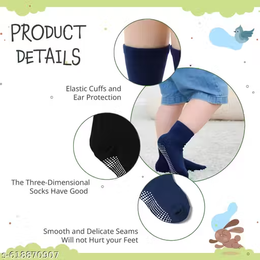 Name: SYGA 3 Pairs Baby Ankle Socks – Soft Cotton Blend with Anti-Slip Grip in Bold & Neutral Shades for 1-3 Years(Black, Dark Grey, Dark Blue)