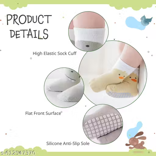 These SYGA baby socks are specially designed for infants. offering a perfect blend of , safety, and cuteness. Made from a soft, breathable cotton blend, they are gentle on delicate baby skin and ideal for all-day wear. The non-slip grips on the soles provide added stability for little ones learning to stand or walk. Each pair features adorable animal face design, adding fun and charm to your baby’s outfit. The stretchable cuffs a secure yet comfortable fit without leaving marks. With five colorful pairs in pastel tones, this set is both practical and stylish. Easy to wash and maintain, these socks are a must-have for every baby’s wardrobe.