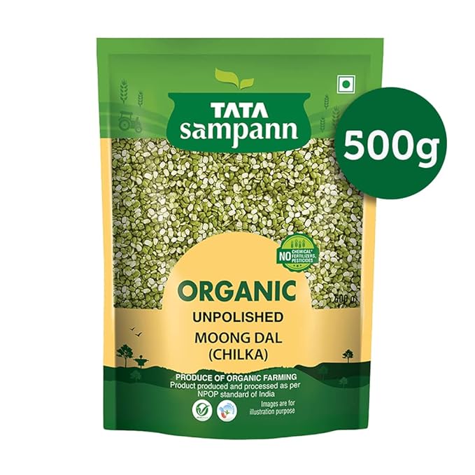 Tata Sampann Organic Moong Chilka Dal, 500 g